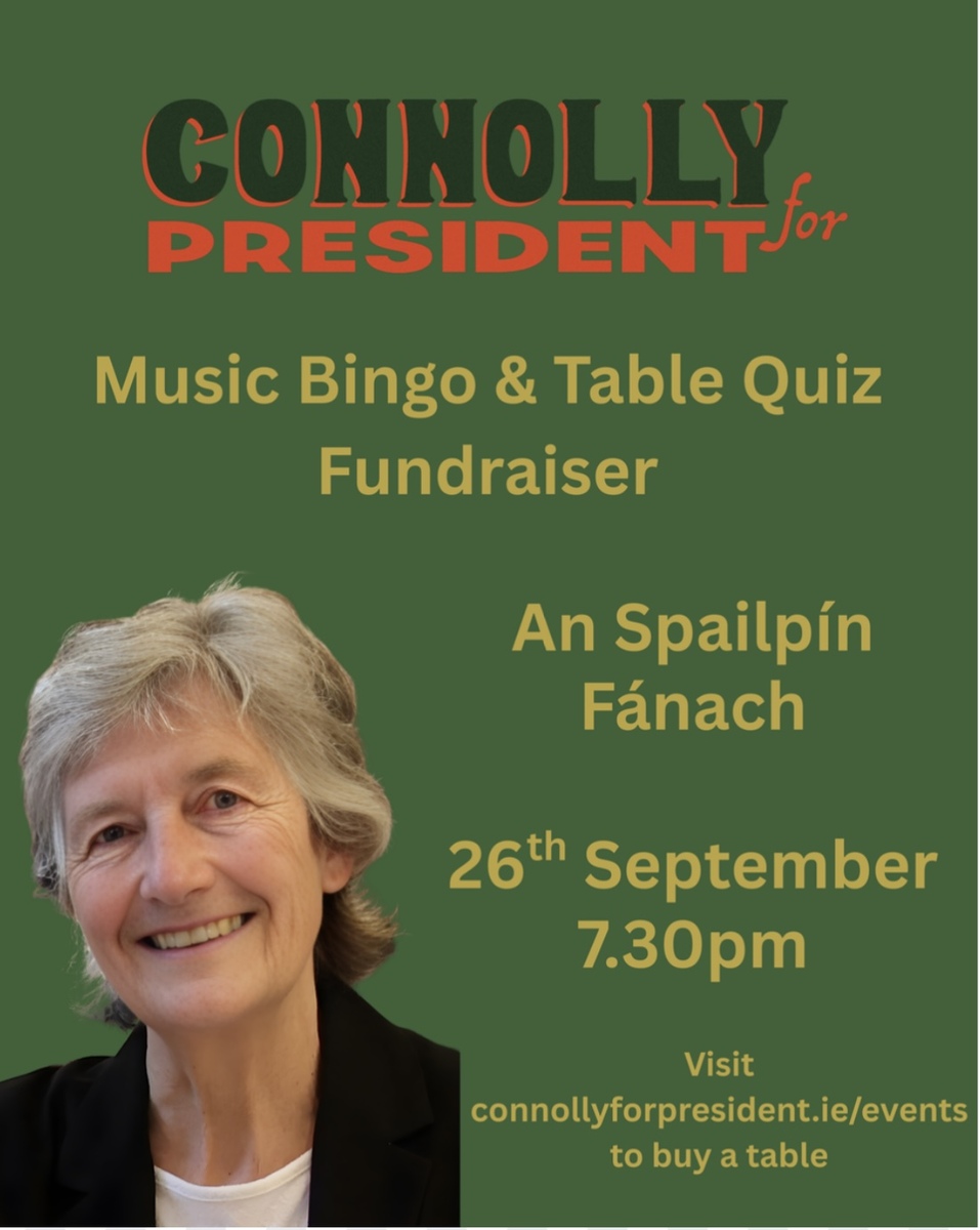 Gather a team or come alone Friday 26th where Ronan Leonard will be hosting a fun evening of trivia, prizes, music bingo, and community spirit, all while helping to build momentum for Catherine Connolly’s grassroots campaign.