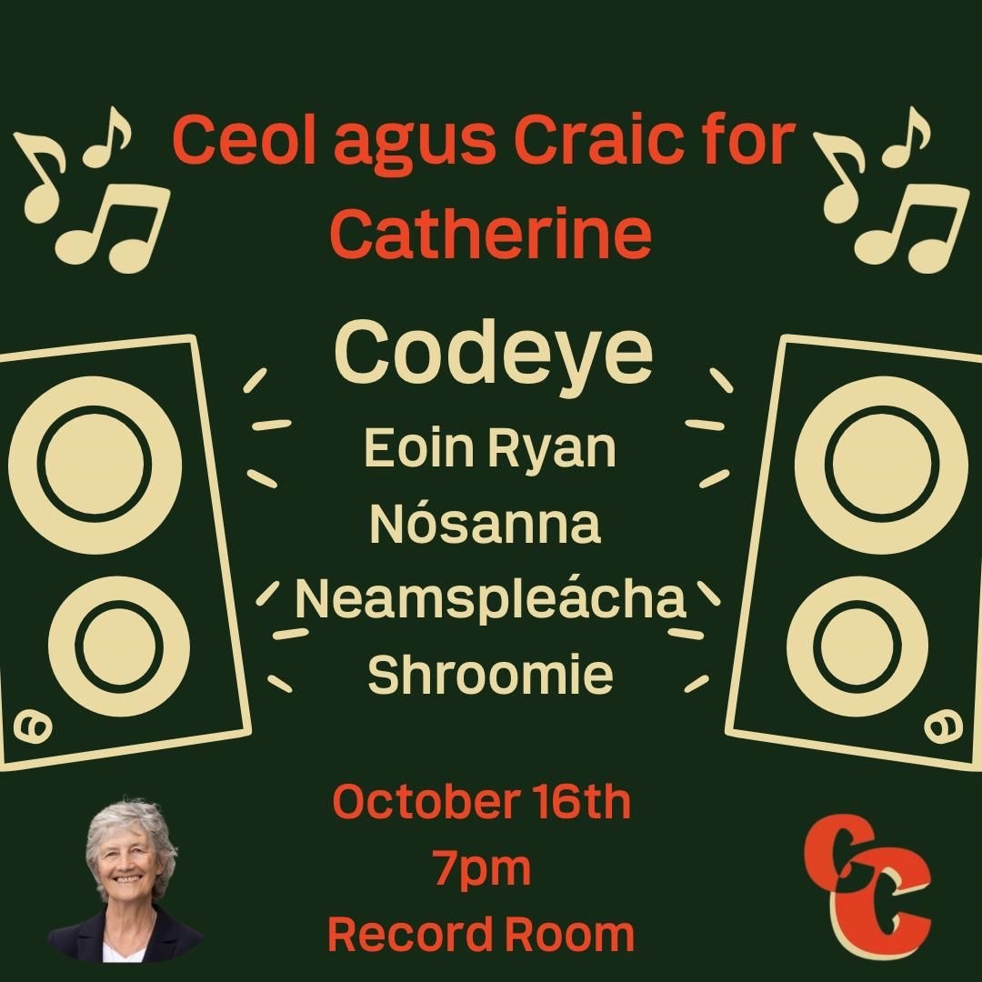 Come along for a night of Ceol agus Craic as local artists fundraise for Catherine Connolly's Presidential Campaign. Doors open from 7pm in The Record Room on Catherine St, Thursday 16th October.